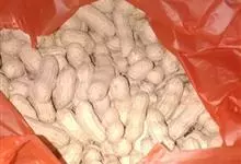 落花生,豆科落花生属一年生草本植物,根部具根瘤;茎直立或匍匐,有棱;托叶被毛,小叶卵状长圆形或倒卵形,先端钝,基部近圆,全缘;花冠为黄色或金黄色;花柱伸出萼管外;荚果长,膨胀,…全部>>
