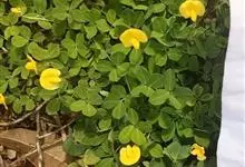 蔓花生,豆科落花生属植物,多年生宿根草本。枝条呈蔓性,株高10-15厘米。叶互生,倒卵形,全缘。花腋生,蝶形,金黄色,花色鲜艳,花量多,白天开花,晚上闭合,花期3~11月。荚果长桃形,果壳薄。…全部>>