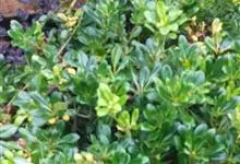 海桐 W. T. Aiton)是海桐科海桐属常绿灌木或小乔木;嫩枝被褐色柔毛;叶聚生于枝顶,浓密且有光泽;伞形花序顶生,花为白色,气味芳香;蒴果呈球形,三瓣裂开,红色;花期3-5月,果熟期9-10月。…全部>>