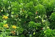 海杧果是夹竹桃科海杧果属的乔木。高4~8米;树皮为灰褐色;全株有丰富乳汁;叶厚纸质,呈倒卵状长圆形或倒卵状披针形,叶面为深绿色,叶背为浅绿色;花为白色,有芳香;核果双生或单个,呈阔卵形或球形,…全部>>