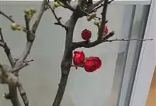贴梗海棠Nakai)是蔷薇科、木瓜海棠属植物。落叶灌木,高达2米,枝条直立开展,有刺。叶片卵形至椭圆形,稀长椭圆形,长3-9厘米,宽1.5-5厘米。花先叶开放,3-5朵簇生于二年生老枝上。…全部>>