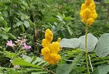 翅荚决明 Roxb.)是豆科决明属灌木植物,高3米。羽状复叶,在叶柄和叶轴上有窄翅;小叶倒卵状长圆形,先端圆钝,基部斜截形;总状花序顶生和腋生;荚果带形,…全部>>