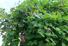 扁豆 Sweet)是豆科扁豆属多年生缠绕藤本植物,又名鹊豆、沿篱豆、藤豆等。全株几无毛,茎长可达6米。羽状复叶具3小叶;托叶基着,叶片披针形;小托叶线形,小叶宽三角状卵形,宽与长相等,…全部>>