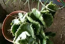 麒麟掌,是大戟科大戟属多年生植物。为金刚纂的带化变异变种。麒麟掌的株乳汁丰富;它的茎圆柱状,上部多分枝,绿色;叶互生,稀少,常生于嫩枝顶端脊上,倒卵形、倒卵状长圆形或匙形,顶端钝圆,具小凸尖,全缘,…全部>>