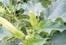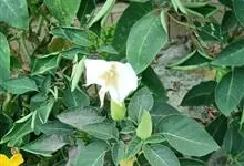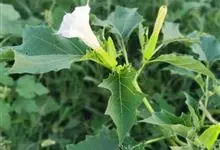 曼陀罗,茄科曼陀罗属一年生大型草本植物,全株光滑。有臭气;叶呈广卯形,边缘具不规则波状浅齿裂;花单生于枝杖间或叶腋,直立,有短梗;花萼是筒状裂片三角形,颜色为白色或淡紫色;果实为蒴果卵状,…全部>>