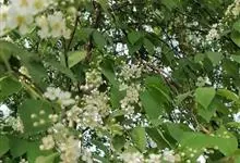 稠李是蔷薇科、李属的乔木。株高达15米;幼枝被绒毛,冬芽无毛或鳞片边缘有睫毛;叶椭圆形、长圆形或长圆状倒卵形,基部圆或宽楔形,有不规则锐锯齿,花序梗和花梗无毛,萼筒钟状,萼片三角状卵形,花瓣白色,…全部>>