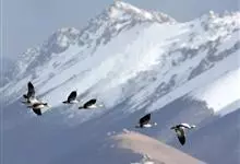 豆雁,雁形目鸭科。成鸟头、颈、背灰褐色,带淡黄色羽缘;尾上覆羽白色,尾羽黑褐色带白端,故飞行伸展时可见尾基和尾端各有一条白色弧线;翼上覆羽灰褐色,初级覆羽深黑灰色带黄白色羽缘,…全部>>