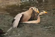 灰雁:体长70-90厘米,翼展147-182厘米,体重2.5-4千克,寿命17年。体大而肥胖。嘴、脚肉色,上体灰褐色,下体污白色,飞行时双翼拍打用力,振翅频率高。脖子较长。腿位于身体的中心支点,…全部>>