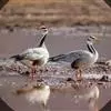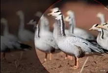 斑头雁是雁形目鸭科雁属鸟类,又称白头雁、黑纹头雁。通体大都灰褐色,头和颈侧白色,头顶有两道黑色带斑;虹膜暗棕色,嘴橙黄色,嘴甲黑色,脚和趾橙黄色;背部淡灰褐色,羽端缀有棕色,形成鳞状斑;颏、喉污白色,…全部>>