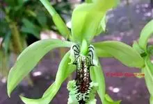 栗鳞贝母兰:根状茎粗壮,坚硬,粗7-8毫米,密被紫褐色的革质鞘。假鳞茎在根状茎上通常相距2-3厘米,长圆形或近圆柱形,向顶端稍变狭,顶端生2枚叶。叶革质,长圆状披针形至椭圆状披针形。花葶连同幼嫩的假…全部>>
