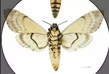 鬼脸天蛾,是鳞翅目天蛾科面形天蛾属动物。成虫翅展100~125毫米,体黑褐色;胸背有骷髅形斑纹;卵圆球形,直径约2毫米,淡黄绿色,表面光滑;老熟幼虫体长70~90毫米,蛹体长约56毫米;前翅为褐色,…全部>>