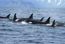 虎鲸,是鲸偶蹄目海豚科虎鲸属哺乳动物。成体体重6600千克,平均体长6-9米;头部略圆,…全部>>