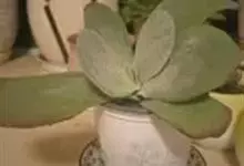 唐印为景天科伽蓝菜属的多年生肉质草本植物。植株中型,株高50厘米,宽20厘米,多分枝;叶片肉质,对生,卵形,全缘,先端钝圆,叶片淡绿色至灰绿色,表面被有厚厚的白粉,光照充足时,叶缘呈红色;圆锥花序,…全部>>