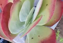 唐印为景天科伽蓝菜属的多年生肉质草本植物。植株中型,株高50厘米,宽20厘米,多分枝;叶片肉质,对生,卵形,全缘,先端钝圆,叶片淡绿色至灰绿色,表面被有厚厚的白粉,光照充足时,叶缘呈红色;圆锥花序,…全部>>