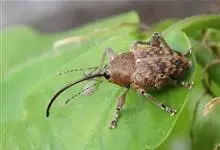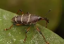 竹象鼻虫,Cyrtotrachelus longimanus,象甲科锥大象甲属的一种昆虫。分布于竹产区,是竹类的主要害虫。以幼虫蛀食竹笋,使笋枯死,还会蛀食1米多高的嫩竹,使其生长不良,节间缩短,…全部>>