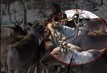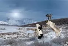 驯鹿,又名角鹿。是鹿科驯鹿属下的唯一一种动物。身长约200厘米,肩高100-120厘米。雌雄皆有角,角的分枝繁复是其外观上的重要特征。长角分枝繁复,有时超过30叉,蹄子宽大,悬蹄发达,尾巴极短。…全部>>