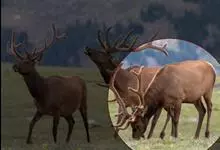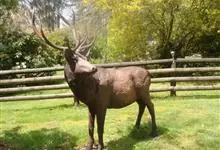 麋鹿是鹿科、麋鹿属唯一的鹿类动物。因为它头脸狭长像马、角像鹿又与其它鹿略有不同、蹄子宽大像牛、尾细长像驴,因此又名四不像。它的角形独特,形状与其它鹿的犄角正好相反,前杈再分小杈,而后杈几乎不分叉。头大,…全部>>