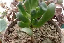 筒叶花月,是景天科青锁龙属的多年生草本植物。植株多分株,灌木状,茎较粗壮,圆柱形,表皮灰褐色;叶片肉质,互生,呈圆筒状,簇生于茎或分枝顶端,叶端呈斜截形,截面为椭圆形;花呈星状,淡白色;花期秋季。…全部>>