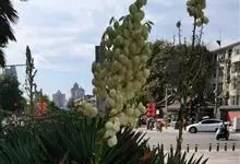 丝兰是天门冬科丝兰属植物。茎短或无茎;圆锥花序烛台状,花朵杯形,下垂,白色;叶基部呈剑形放射状,被白粉,革质;花期8—10月。丝兰原产于北美,在中国长江流域一带和华北地区均有栽培,长江以南地区也有分布。…全部>>