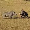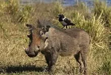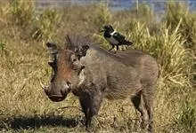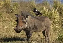 非洲疣猪:也称普通疣猪,体重在50-75千克之间,因眼部下方具疣而得名,在挖土取食时,这些疣可能有助于保护眼睛。头较大,占体长的三分之一。背部具鬃毛。獠牙4枚,长而锋利。独居或成群穴居,善于挖洞。…全部>>