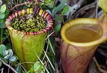 猪笼草 Druce),别名捕虫草、猴子埕、猪仔笼等,为猪笼草科猪笼草属的直立或攀援草本植物。其株高1~3米,基生叶密集呈莲座状,近无柄,叶片披针形,瓶状体大小不一,狭卵形或近圆筒形,…全部>>