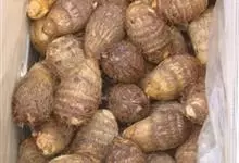 芋头又称芋、芋艿,天南星科植物的地下球茎,形状、肉质因品种而异,通常食用的为小芋头。多年生块茎植物,常作一年生作物栽培。叶片盾形,叶柄长而肥大,绿色或紫红色;植株基部形成短缩茎,逐渐累积养分肥大成肉…全部>>