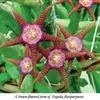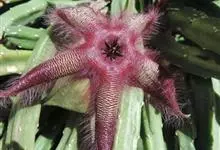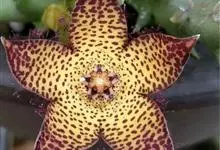 巨花犀角又称大豹皮花,是夹竹桃科犀角属的一种植物。茎粗,花大,边缘生长细毛。植株柱形多分枝呈丛生,柱形具4棱,棱缘具细小疣突。花大,五角星形黄色,并有横向棕褐色斑纹,似豹皮而得名。花期夏秋两季。…全部>>