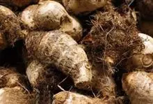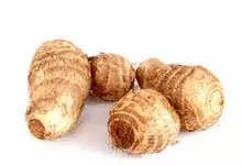 芋头又称芋、芋艿,天南星科植物的地下球茎,形状、肉质因品种而异,通常食用的为小芋头。多年生块茎植物,常作一年生作物栽培。叶片盾形,叶柄长而肥大,绿色或紫红色;植株基部形成短缩茎,逐渐累积养分肥大成肉…全部>>