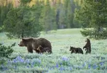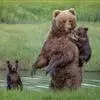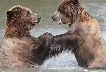 棕熊是熊科熊属哺乳动物。体形健硕,肩背隆起,身后长有一条短尾。毛色多为棕褐色或棕黄色;老年呈银灰色;幼年为棕黑色。野生条件下寿命为20—30年。棕熊分布广泛,主要分布在欧亚大陆和北美,…全部>>