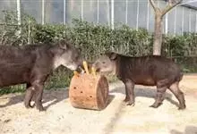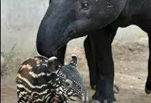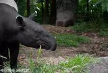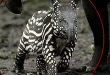 低地貘:体长达1.7-2.1米,尾巴长5-10厘米,体重200-250千克,肩高0.7-1.1米。呈灰棕色至深褐色,腹部色淡。颈部及耳缘白色,由头顶至颈背有一道短而直立的鬃毛,带黑色,身上的毛短而光…全部>>