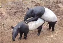 亚洲貘:亦称马来貘,是貘类中最大的一种,体长为1.8-2.5米,肩高90-120厘米,尾长5-10厘米,体重250-540千克。又叫五不像,它的鼻似象,耳似犀,尾似牛,足似虎,躯似熊,全身毛色黑白相…全部>>