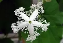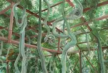 蛇瓜是葫芦科栝楼属的一年生攀援藤本植物。别名蛇豆。茎被柔毛及疏长柔毛状硬毛;叶圆形或肾状圆形,先端圆钝或宽三角形,叶基弯缺深心形;花雌雄同株,苞片钻状披针形,萼筒密被毛,裂片呈窄三角形,花冠白色,…全部>>