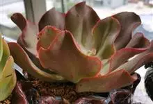 女王花笠,又名扇贝石莲花、女王花舞笠,是景天科拟石莲花属的多肉植物。由美国加利福尼亚州的育种师Dick Wright于1964年培育。特征是呈大波浪状褶皱的红色叶缘和气质高贵的粉紫色调。…全部>>
