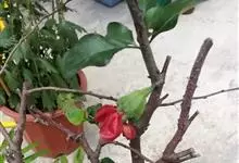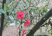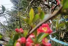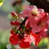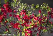 贴梗海棠Nakai)是蔷薇科、木瓜海棠属植物。落叶灌木,高达2米,枝条直立开展,有刺。叶片卵形至椭圆形,稀长椭圆形,长3-9厘米,宽1.5-5厘米。花先叶开放,3-5朵簇生于二年生老枝上。…全部>>