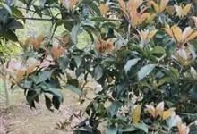 石楠 Kalkman),是蔷薇科石楠属的常绿乔木,高5~12米,株型紧凑,树冠圆球形。树枝为褐灰色;鳞片为褐色,没有毛;叶片革质,长椭圆至侧卵状椭圆形,有锯齿,新叶红色光亮。复伞房花序,白色小花,…全部>>