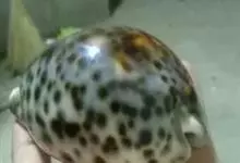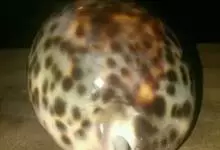 黑星宝螺是宝螺科宝螺属的软体动物。贝壳较大而重,呈卵圆形,圆鼓。长9-10.6厘米,宽约6.8厘米,高约5.3厘米。壳质坚厚,极光滑,有瓷光,色泽呈白色或淡黄色,上面布有大小不同的黑褐色斑点,…全部>>