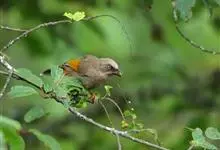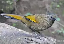 橙翅噪鹛:是噪鹛科、彩翼噪鹛属的中型鸟类,体长22-25厘米。头顶深葡萄灰色或沙褐色。上体灰橄榄褐色,外侧飞羽外翈蓝灰色、基部橙黄色,中央尾羽灰褐色,外侧尾羽外翈绿色而缘以橙黄色并具白色端斑。…全部>>