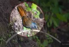 蓝翅噪鹛:噪鹛科、彩翼噪鹛属动物。中型鸟类,体长22-25厘米。上体棕橄榄褐色密被黑色鳞状斑,眼蓝白色,眼上有一长而宽阔的黑色眉纹,从眼先直到颈侧。下体棕褐色被黑色鳞状斑;尾上和尾上覆羽栗色,…全部>>