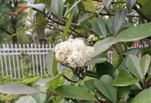 石楠 Kalkman),是蔷薇科石楠属的常绿乔木,高5~12米,株型紧凑,树冠圆球形。树枝为褐灰色;鳞片为褐色,没有毛;叶片革质,长椭圆至侧卵状椭圆形,有锯齿,新叶红色光亮。复伞房花序,白色小花,…全部>>