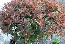 红叶石楠 是蔷薇科,石楠属杂交种,为常绿小乔木或灌木,乔木高可达5米、灌木高可达2米。叶片革质,长圆形至倒卵状、披针形,叶端渐尖,叶基楔形,叶缘有带腺的锯齿,花多而密,复伞房花序,花白色,梨果黄红色,…全部>>