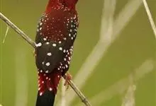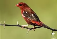 红梅花雀小型鸟类,体长9-10厘米。雄鸟通体朱红色,背、肩、胸等满布白色小斑点,两翅和尾黑褐色均具白色端斑,嘴红色,脚蜡黄色。雌鸟上体淡褐色或赭褐色,翅上中覆羽、大覆羽和内侧飞羽末端具白色斑点,…全部>>