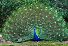 绿孔雀是鸡形目雉科孔雀属鸟类,别名:孔雀、越鸟、爪哇绿孔雀。雄性绿孔雀全身呈翠绿色,并反紫铜色光。头顶有一簇直立的冠羽,尾上复羽发达的约长1米,每羽端部有一个蓝色和翠绿色镶嵌的眼状斑,…全部>>