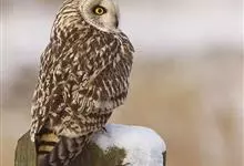 短耳鸮又名小耳木兔、田猫王、夜猫子等,是鸮形目鸱鸮科耳鸮属中小型猛禽动物。成鸟面盘显著,眼周黑色;眼先及内侧眉纹灰白色,面盘余部棕黄色杂以黑色细羽干纹;耳簇羽短小而几乎不外露,…全部>>