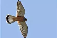 红隼:是隼科、隼属的小型猛禽之一。体重173-335克,体长305-360毫米。翅狭长而尖,尾亦较长,外形和共同爪隼非常相似。雄鸟头蓝灰色,背和翅上覆羽砖红色,具三角形黑斑;腰、尾上覆羽和尾羽蓝灰色,…全部>>