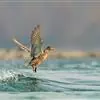 赤膀鸭,是雁形目鸭科鸭属中型游禽。雄鸟嘴黑色,脚橙黄色。头侧及头上部浅白色,满杂以褐色斑点,自嘴基经眼到耳区有一条暗褐色贯眼纹。颈部领圈棕红色,在后颈中部断开。上体暗褐色,背上部具白色波状细纹,腹白色,…全部>>