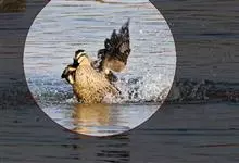 赤膀鸭,是雁形目鸭科鸭属中型游禽。雄鸟嘴黑色,脚橙黄色。头侧及头上部浅白色,满杂以褐色斑点,自嘴基经眼到耳区有一条暗褐色贯眼纹。颈部领圈棕红色,在后颈中部断开。上体暗褐色,背上部具白色波状细纹,腹白色,…全部>>