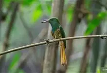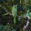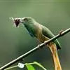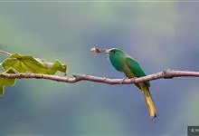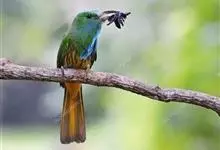 蓝须夜蜂虎是佛法僧目、蜂虎科的鸟类,体长约30厘米,是绿色林栖型蜂虎,蓝色的胸羽蓬松,嘴厚重而下弯。成鸟顶冠淡蓝,腹部棕黄带绿色纵纹。尾羽腹面黄褐。亚成鸟全身绿色。喉、胸部中央的羽甚长和亮色;该物种…全部>>