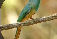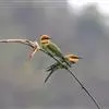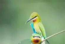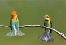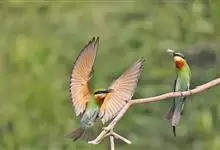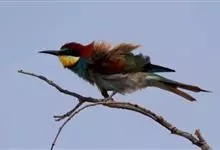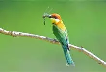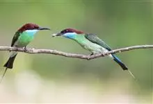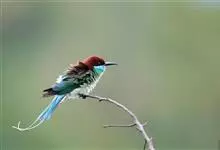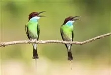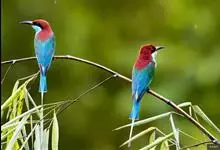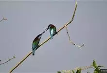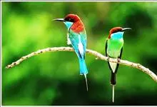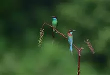 蓝颊蜂虎:是蜂虎科、蜂虎属的鸟类,共有2个亚种。体长27-33厘米,翼展46-49厘米,体重38-50克。嘴形细长而下弯,先端尖,…全部>>