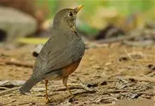 赤胸鸫是鸫科、鸫属中型鸟类,体长22-24厘米。整个头、颈和喉暗橄榄褐色或灰褐色,上体橄榄褐色。胸和两胁橙红色,腹以下白色。下嘴黄色,脚橙黄色具黄色眼圈。虹膜褐色,上嘴褐色,下嘴黄色,脚黄色。…全部>>
