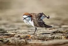 赤颈鸭属中型鸭类,个体较家鸭小,和罗纹鸭大小差不多,体长41-52厘米,体重0.6千克左右。雄鸟头和颈棕红色,额至头顶有一乳黄色纵带。背和两胁灰白色,满杂以暗褐色波状细纹,翼镜翠绿色,翅上覆羽纯白色。…全部>>